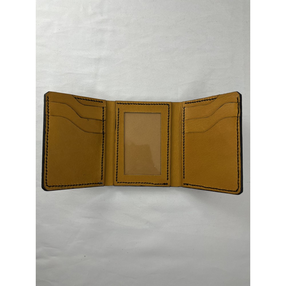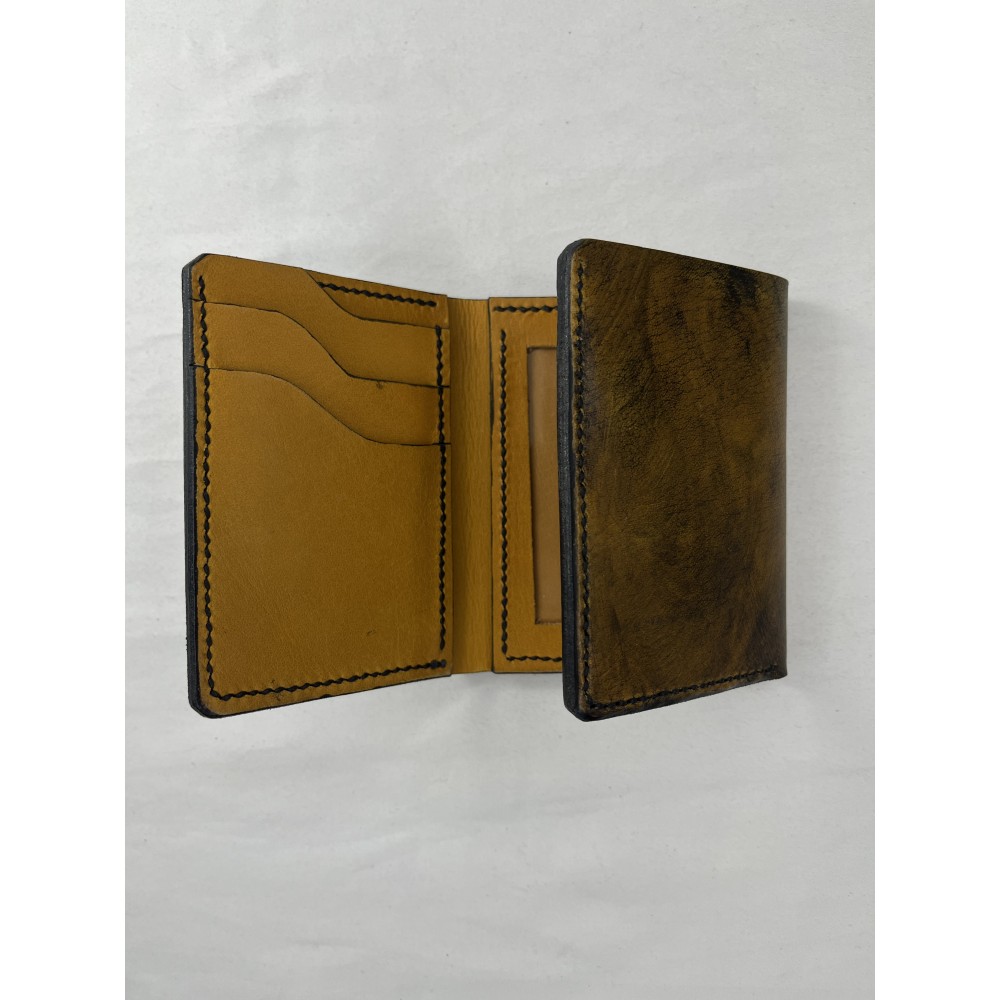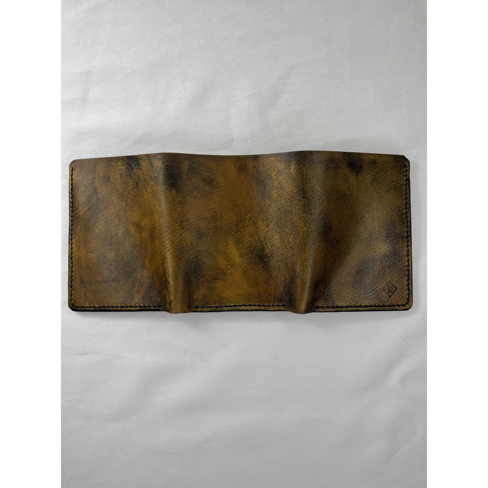 MTF Trifold Deri Cüzdan’ın sarı eskitme rengi, veg-tan derinin zamanla kazandığı patina ile her kullanıcıya özel bir karakter sunar.