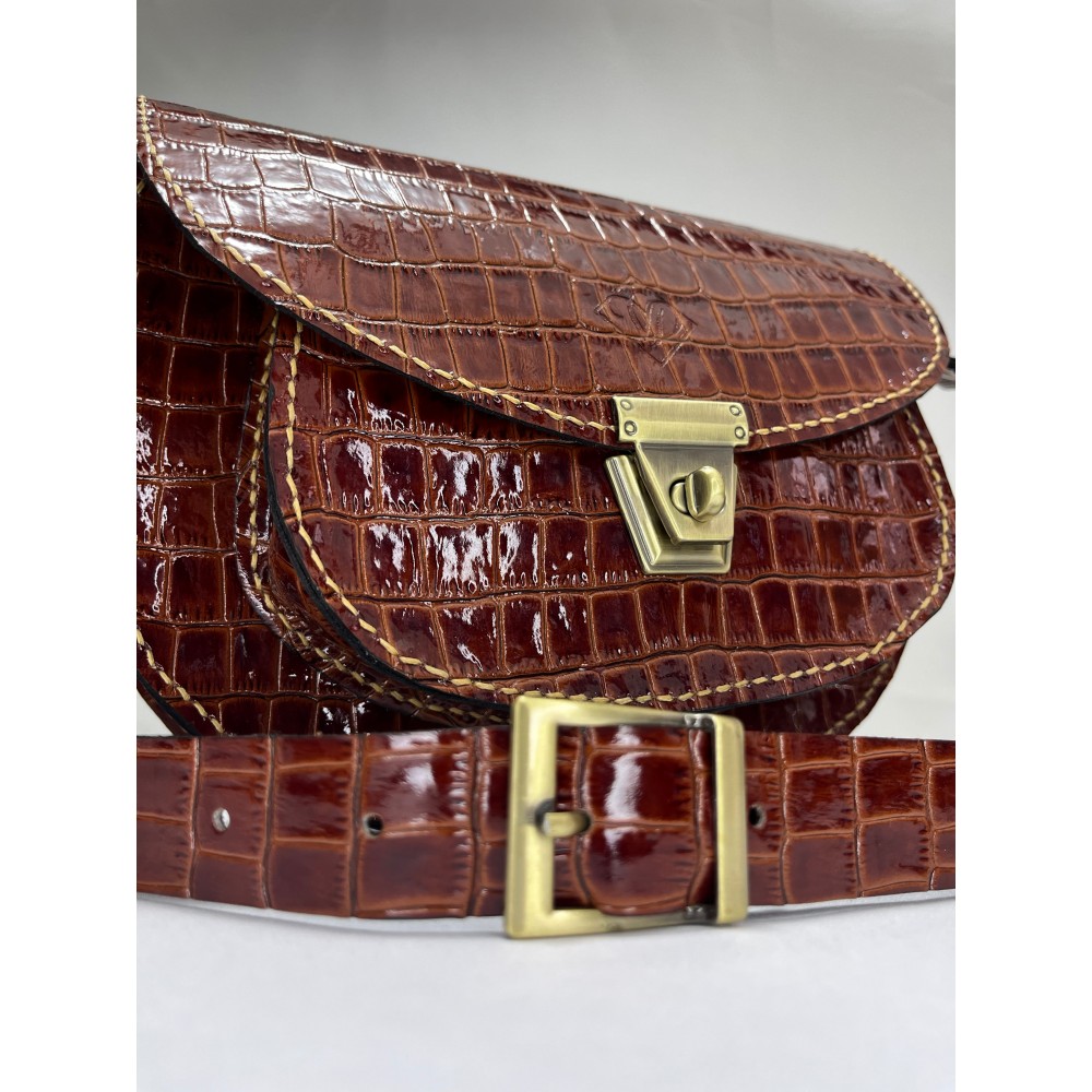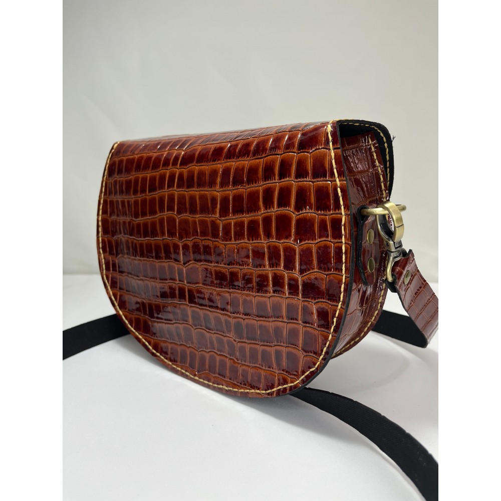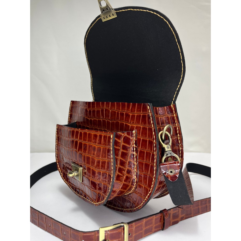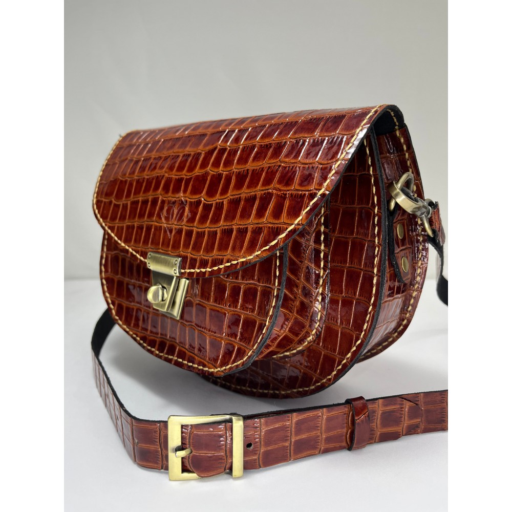 PITA Deri Çanta – Kahve Croco, parlak dokulu yüzeyi ve el işçiliğiyle hazırlanmış formuyla modern lüksün en özgün halini sunar.