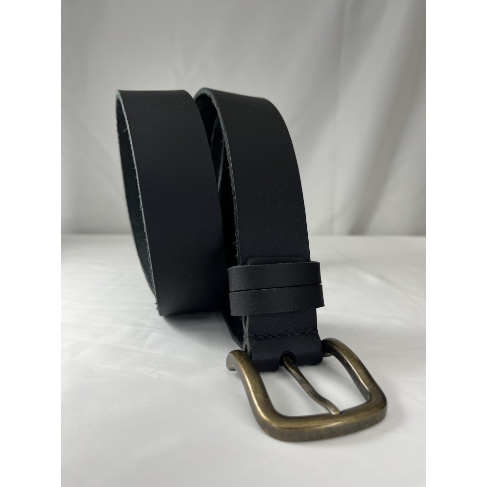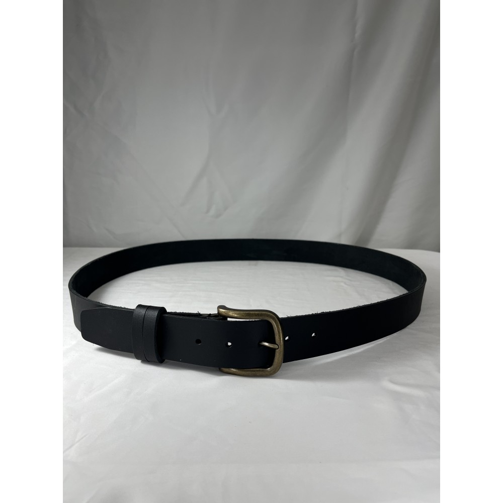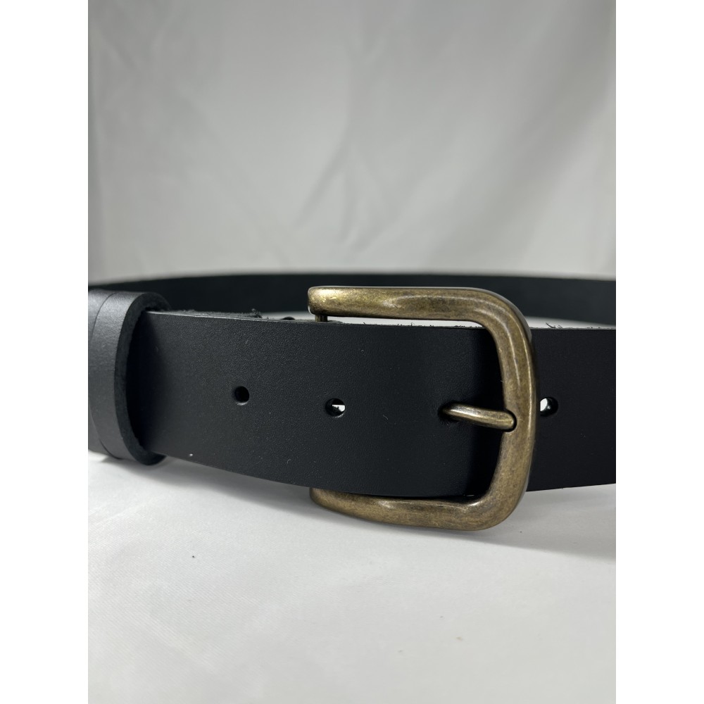 Mat siyah deri yüzeyi ve eskitme pirinç tokasıyla günlük kullanımdan klasik kombinlere kadar geniş bir uyum sunar.
