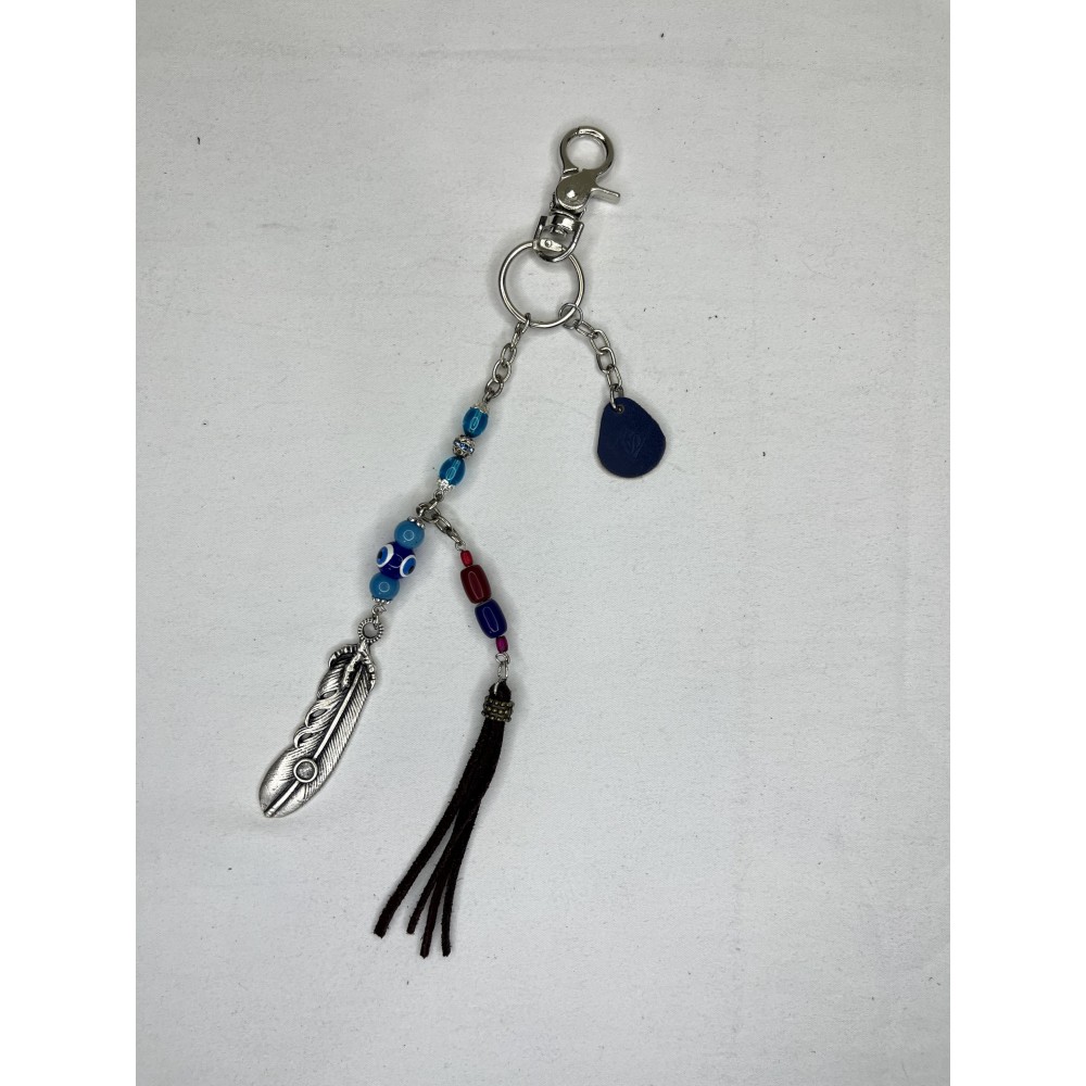 El yapımı deri püskül, doğallığın sıcaklığını ve ruhsal dengeyi tasarıma taşır.