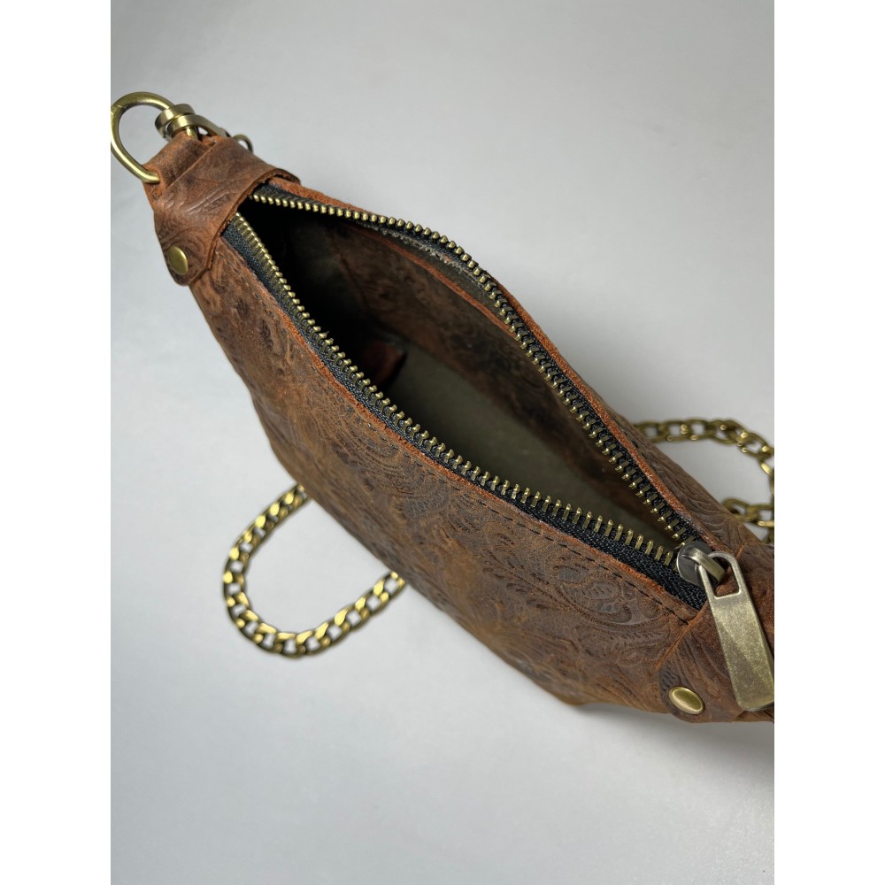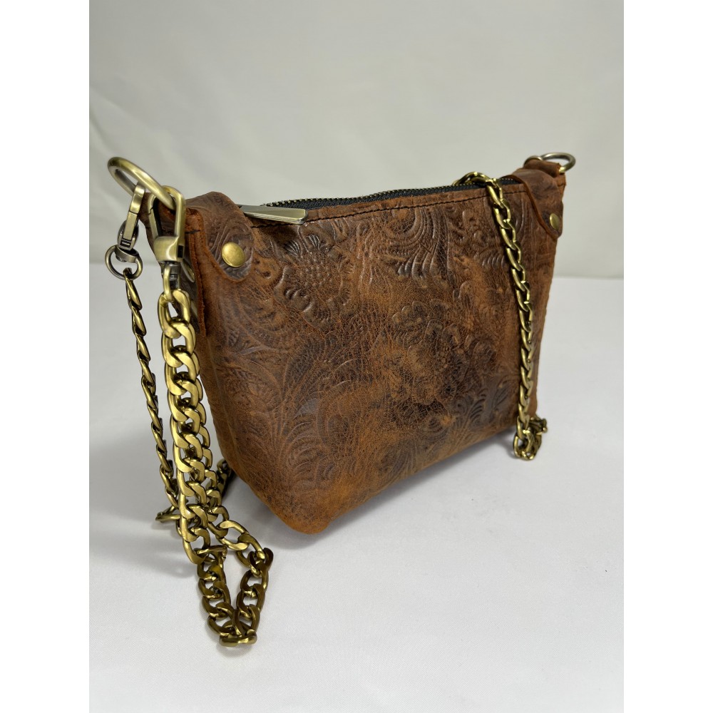 NIV Kahverengi, işlenmiş yüzeyi, sıcak tonları ve pirinç görünümlü zincir detayıyla zamansız ama karakterli bir duruş sunar. Küçük formda güçlü etki.