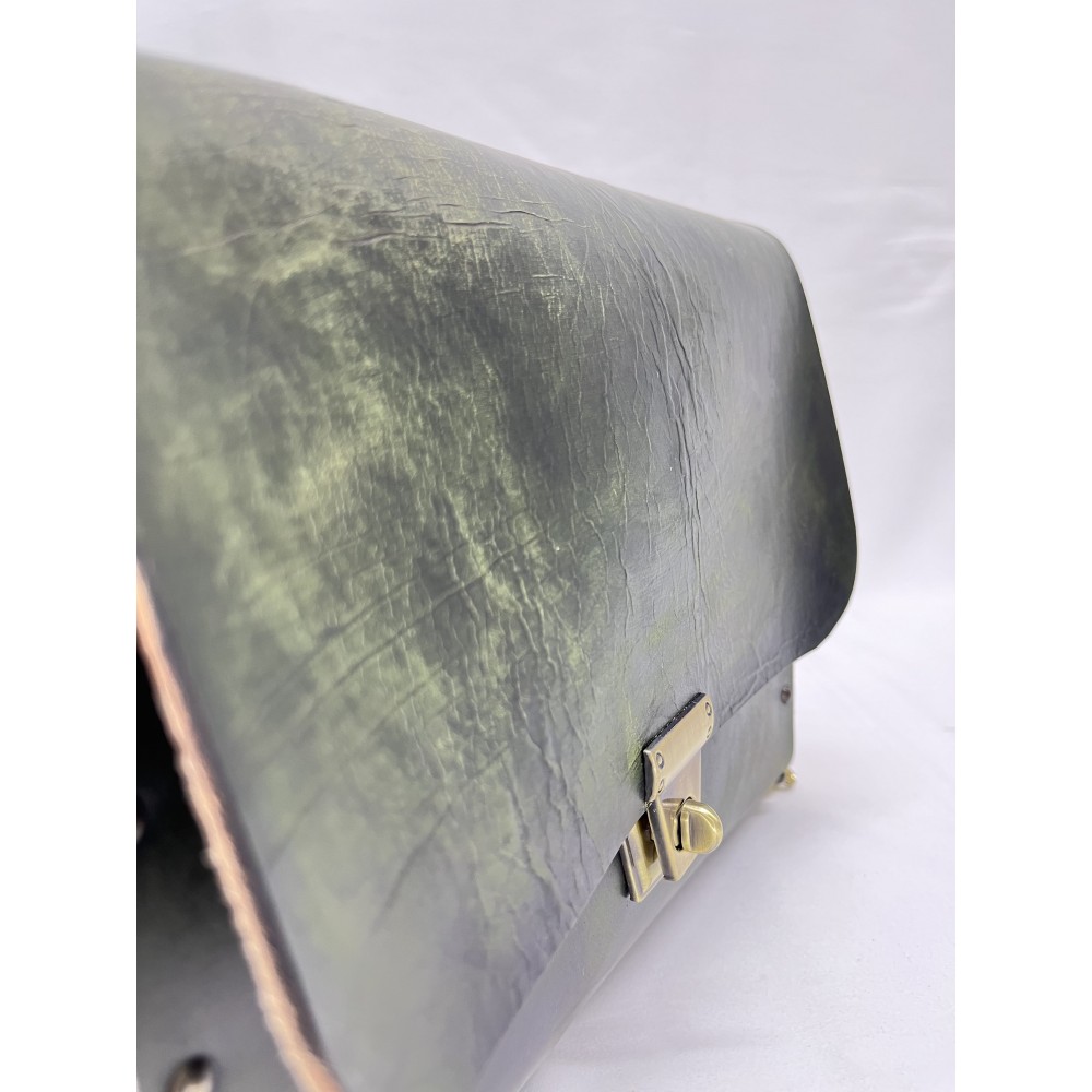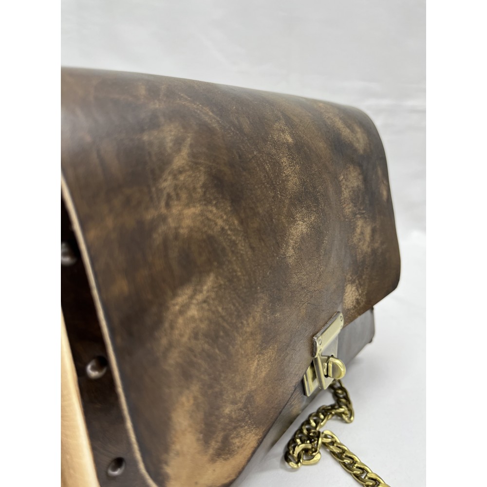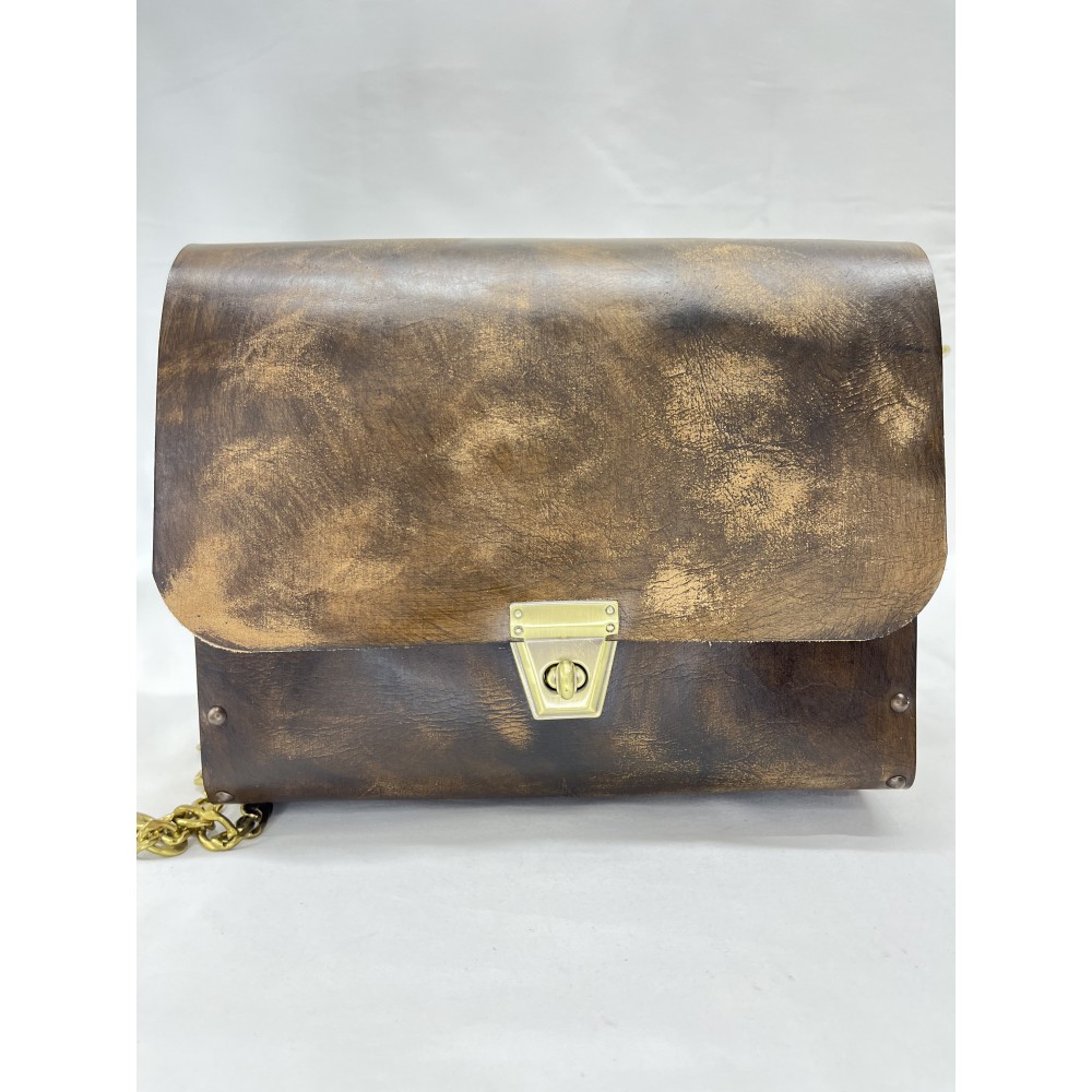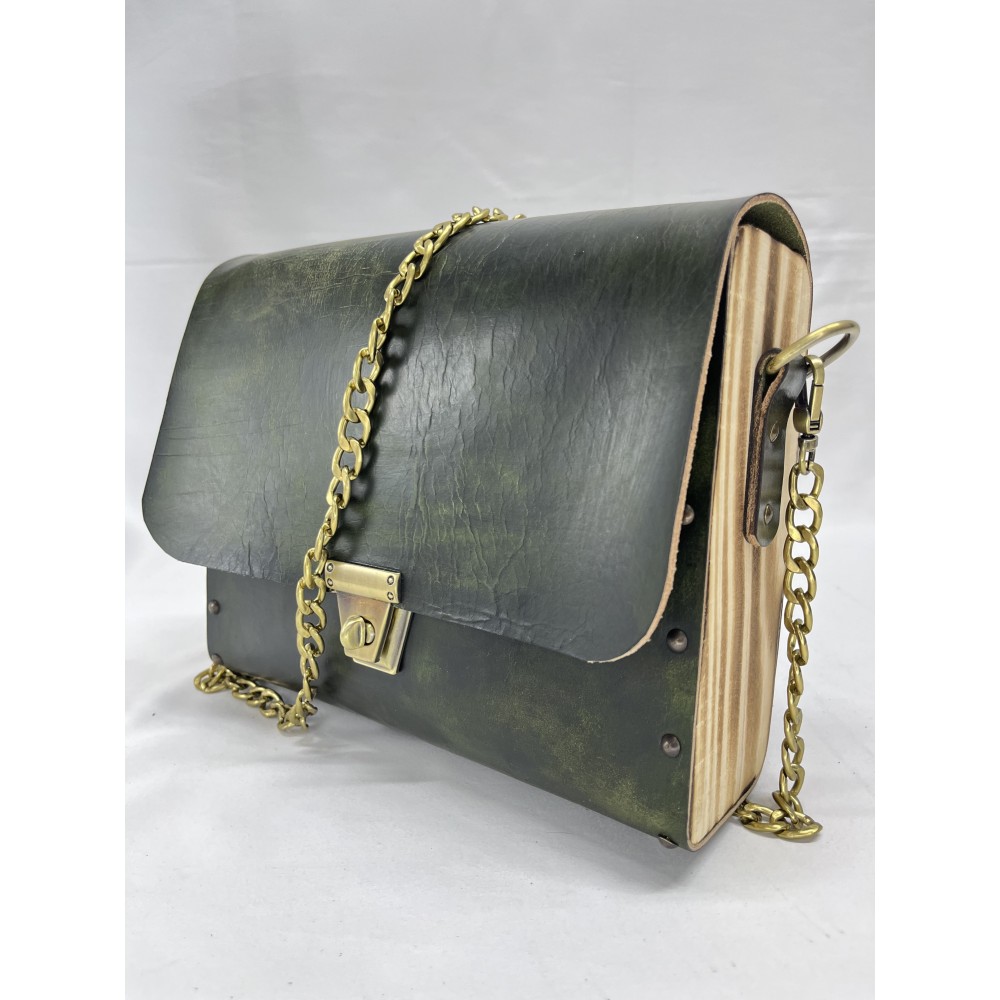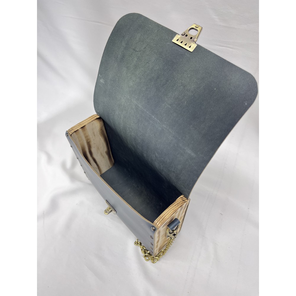 Ahşap kenar detayları, özel yakma işlemiyle antik bir görünüm kazanmış; bu da çantaya hem rustik hem de lüks bir karakter kazandırmıştır.