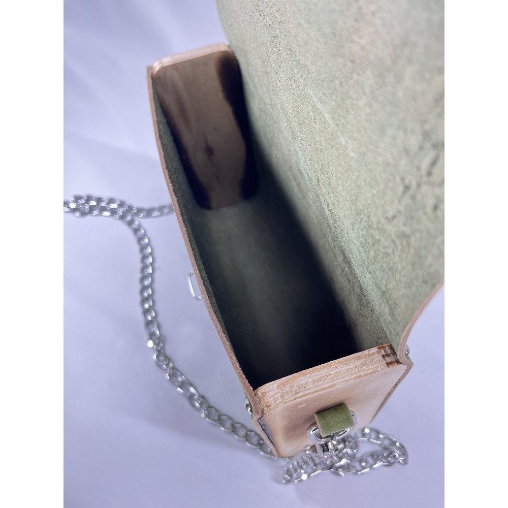 SOLENNE Mini – Ahşap Kenarlı Deri Çanta, zarif detaylarıyla küçük boyutta büyük bir etki yaratır.